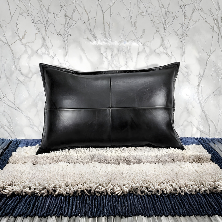 Black Leather Pillow Case - Luxurious Lambskin Cushion Cover